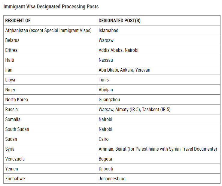 对于那些美国本来就没有提供常规非移民签证业务的国家公民,则必须到指定的第三国美国使领馆面谈。