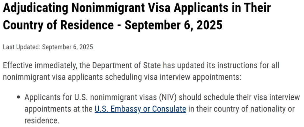 收藏突发! 美国务院: 非移民签证必须返母国面签! 大批华人受影响