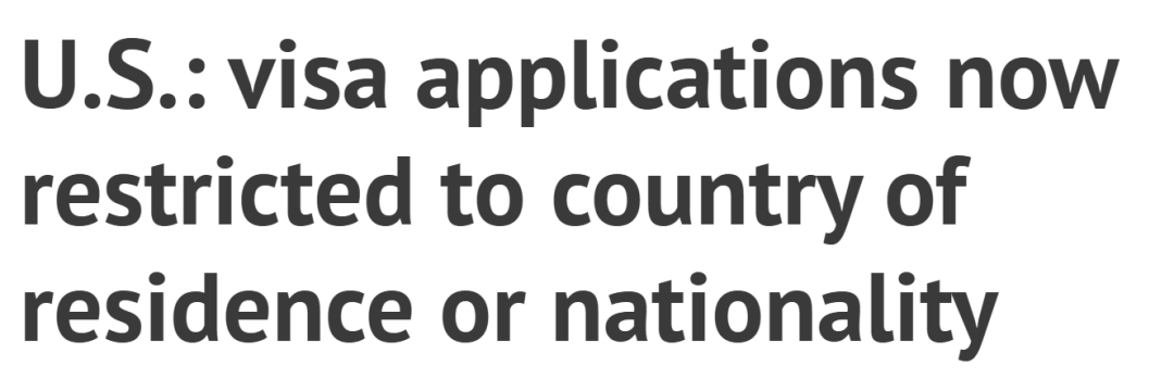 新规意味着,绝大多数的美国非移民签证——如旅游签证、学生签证、工作签证的申请者,必须回到自己的国籍国或长期居住国预约面谈。