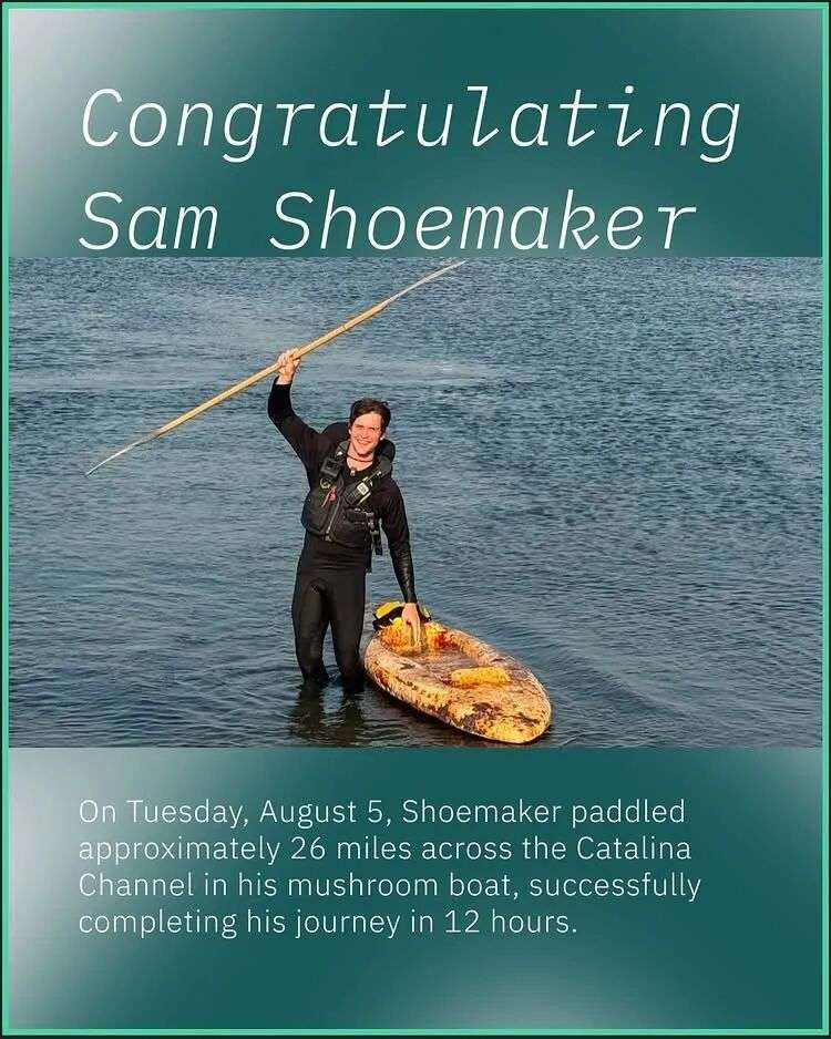 此时他和团队已经在为横渡卡塔利娜海峡做准备,假如挑战成功,将创造全世界用菌丝体船完成的最长海上航行。