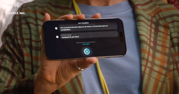 其中实时翻译功能,已经在社交网络上目前被热炒。根据苹果公司发布的视频,不同语言的人在交流时: