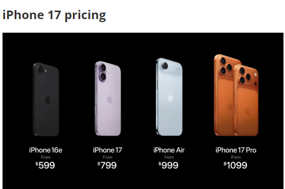 iPhone 17 Pro:起价 $1099(比去年上涨 $100)