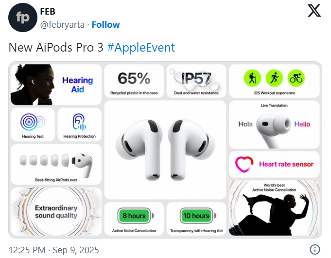 AirPods Pro 3 的 实时翻译功能 一发布,就有人调侃:以后开会、聚会、甚至跨国商务洽谈,都不用担心语言不通——一人一个耳机,想说啥就说啥,再也不担心表达不够清晰了。