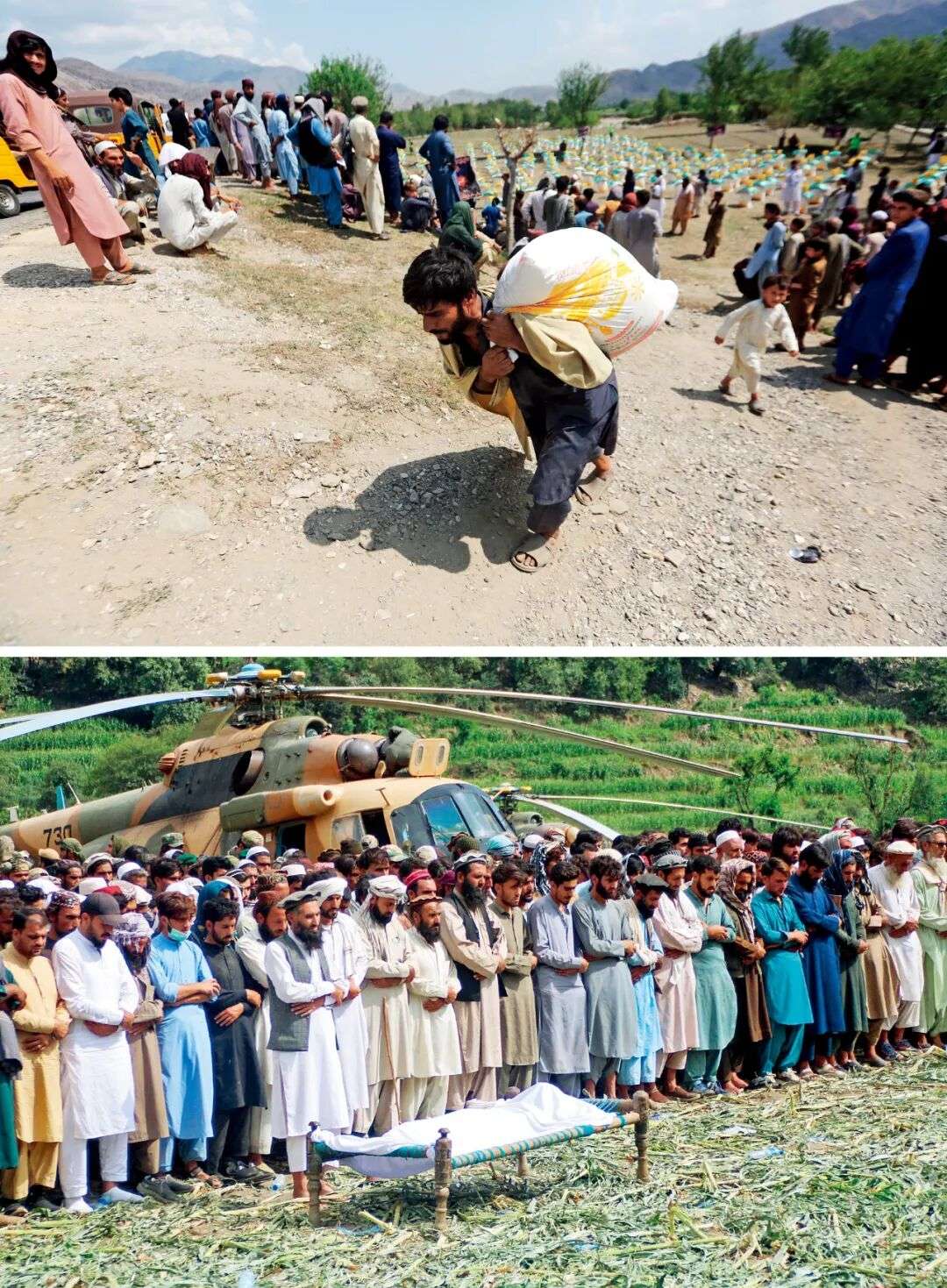 下图:9月2日,阿富汗库纳尔省努尔加尔,当地民众参加地震遇难者葬礼。图/视觉中国