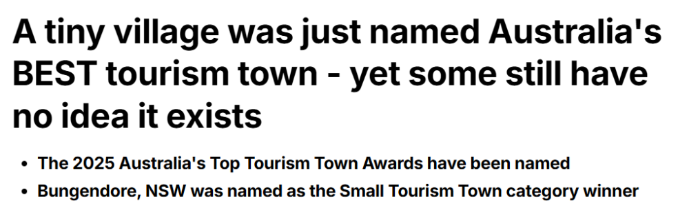如今,Bungendore凭借这份“顶级旅游小镇”的荣誉,正吸引越来越多游客前来体验它独特的魅力。