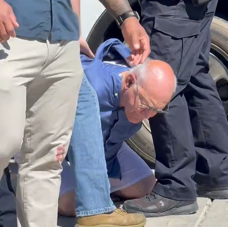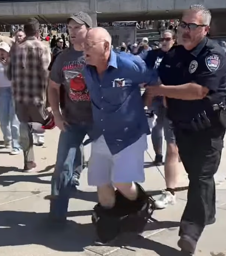 正当校园一片奔逃时,警方迅速带走一名白发老者,他当时甚至裤子下滑,引得围观者高喊“你这个混蛋!”(“you f***ing monster!”)