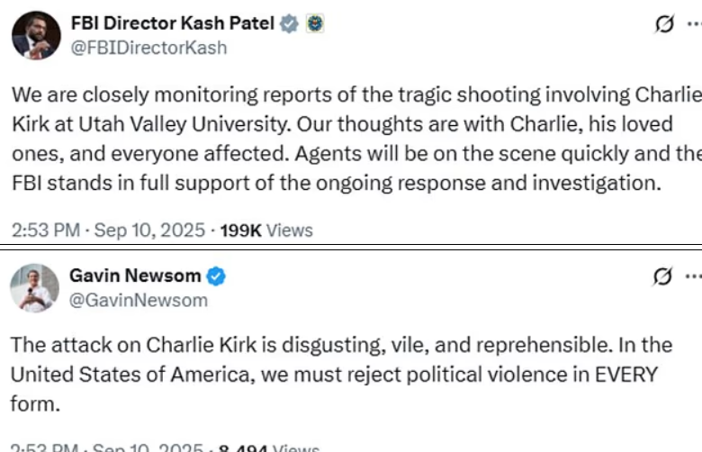 犹他州参议员 Mike Lee、加州州长 Gavin Newsom 以及多名政界人士也发表声明,罕见地在党派对立之外达成一致,谴责一切形式的政治暴力。