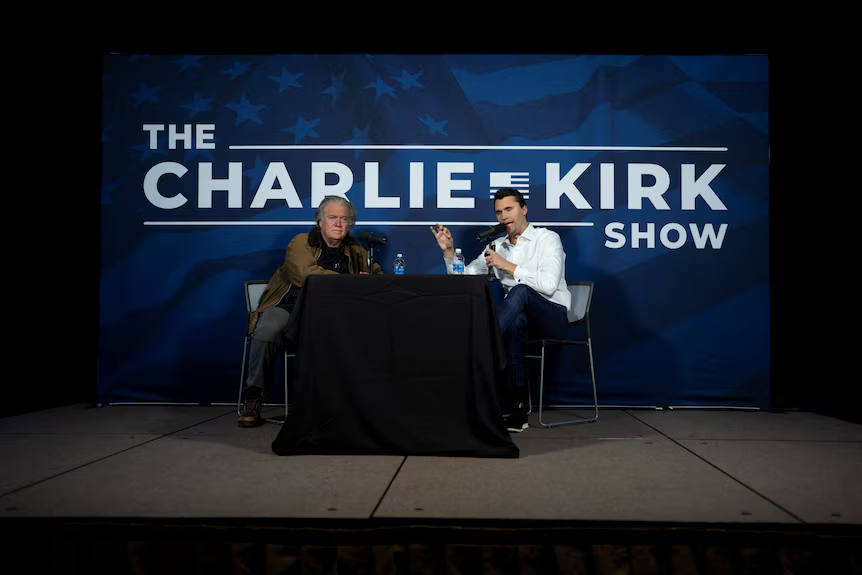 Kirk还主持高收视率政治播客,《The Charlie Kirk Show》,每月有超过 50 万听众。