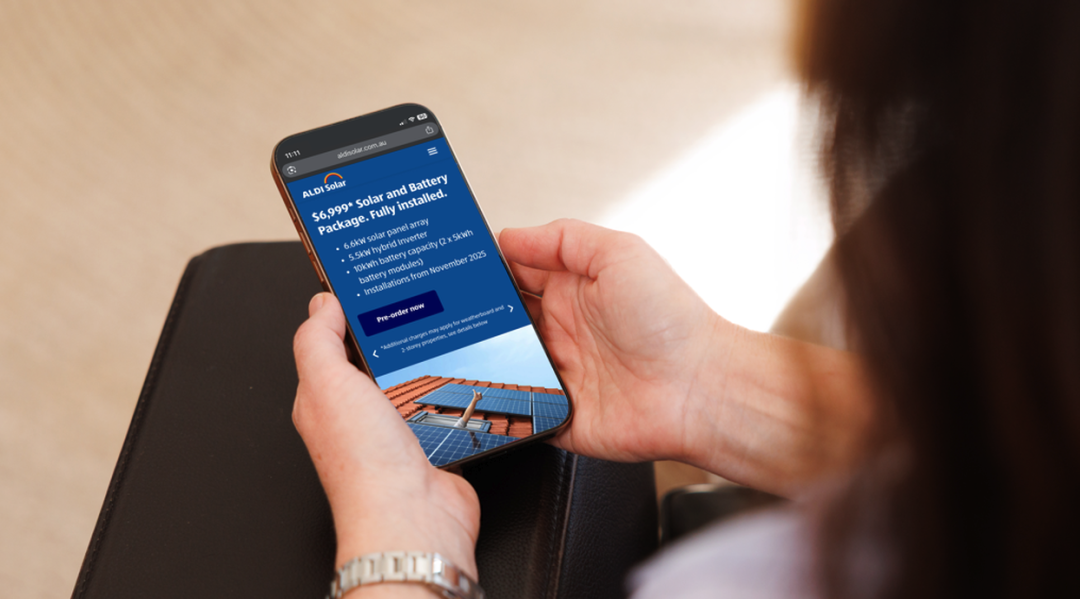 超市巨头 Aldi 又出新招!从今天起,Aldi 正式在新州、维州、昆州和首都领地推出 太阳能+电池套餐,消费者不仅能买到便宜杂货,还能直接订购太阳能系统。