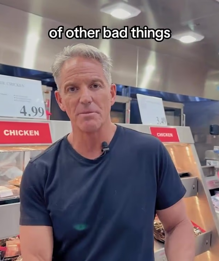 视频里,Pompa博士指着加热灯下的烤鸡,严肃告诫:“进超市,这东西千万不能碰。这种烤鸡,绝对、永远都不安全。”