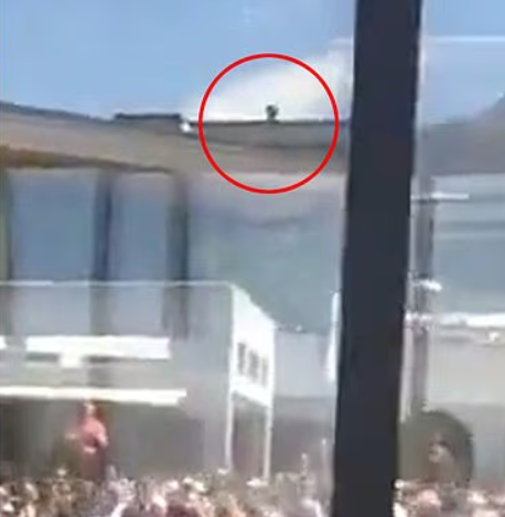 当天中午,Kirk 坐在一顶白色帐篷下,手持话筒与学生们互动。忽然,一声枪响从远方传来,可以看到Kirk脖子上血流喷涌而出,随后身体抽搐、倒地。混乱的尖叫声和人群的奔逃,将原本的演讲现场瞬间变为恐怖现场。