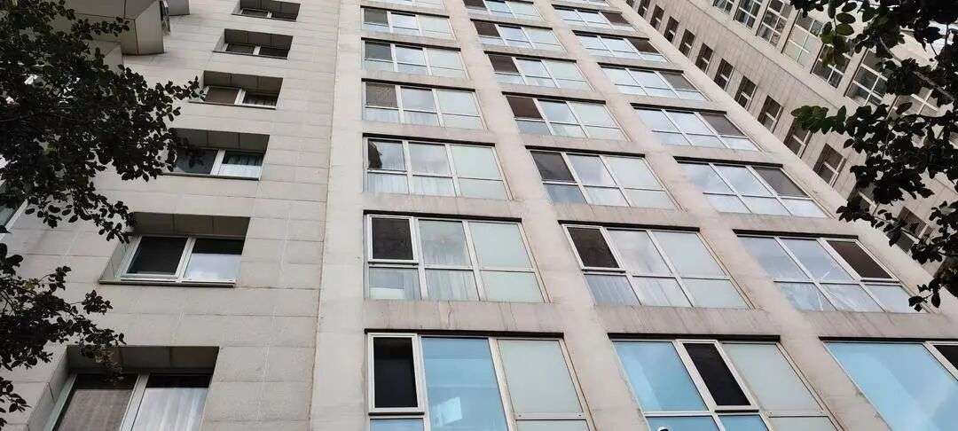 在18号楼下,记者注意到发生坠楼的地面已经打扫干净,周围没有任何隔挡。在楼下入口处,往上能看到发生坠楼事件房间的纱窗存在损坏。