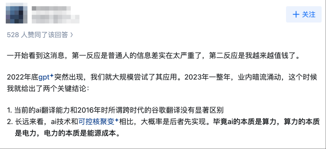 有翻译行业从业者依然坚持,翻译院校倒闭优势依然在我,长远来看,可控核聚变甚至要比AI技术的发展更快一步。