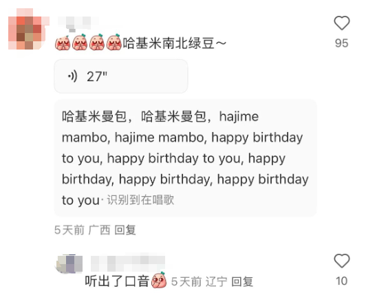 简单、魔性的旋律极易让人上头,也给网友们提供了“玩梗”的好素材。有人直接用“哈基米”的旋律改编成《生日快乐哈基米》,甚至还有博主借助AI即兴创作出更多版本,洗脑感十足。