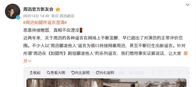 9月15日,周迅如懿传谣言澄清,登上热搜。