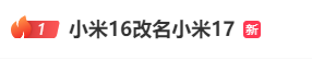 随即,话题“小米16改名小米17”也冲上热搜第一。