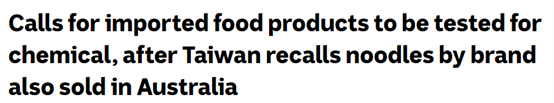 而在中国台湾地区发生的泡面召回事件,也已经在澳洲引起了关注。因此有不少人都开始呼吁检测进口食品中的是否含有这种化学物质。