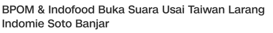 据印尼食品药品监督局(BPOM)消息,中国台湾当局在近期的食品检测中发现,印尼知名泡面品牌Indomie旗下的一款畅销产品——Indomie Soto Banjar Limau Kulit,被检测出含有 “环氧乙烷”。