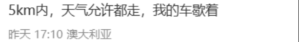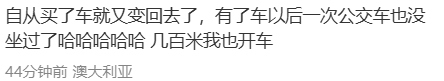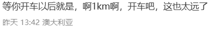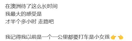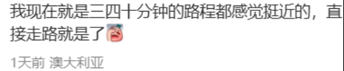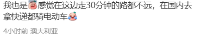 有网友表示,在国内时,连取快递都要骑电动车,但在澳洲,30分钟的步行路程也感觉“不远”。