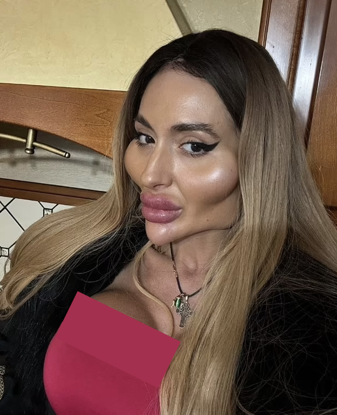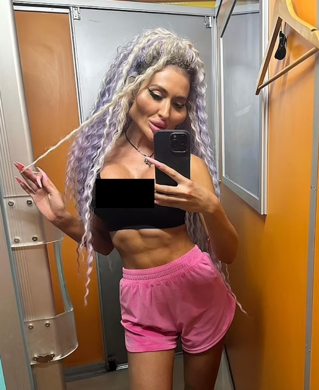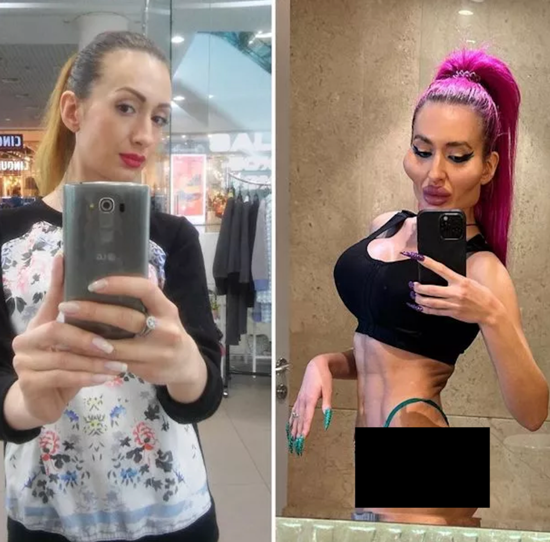 她隆了胸,选择植入 1050cc 的假体,效果比普通隆胸更夸张;臀部则通过巴西提臀术加以强化,这是业内公认风险最高的手术之一,但她毫不畏惧: