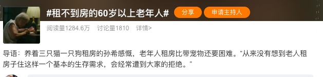 比如前段时间的一个新闻:一个65岁的老人去租房,可是她找了20多家中介,都拒绝了她。