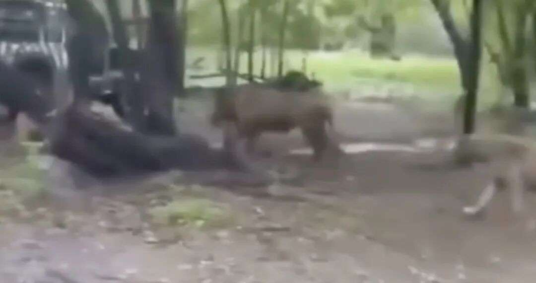 说时迟那时快,这头狮子很快冲上去,从后面抓住了Rangkasamee,迅速将他扑倒在地。紧接着,周围的三四头狮子很快聚拢过来,将Rangkasamee围在中间。