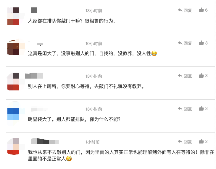 即便外面排很长的队,多数人也会选择耐心等待,不会去敲门,更不会问候里面的人状况。