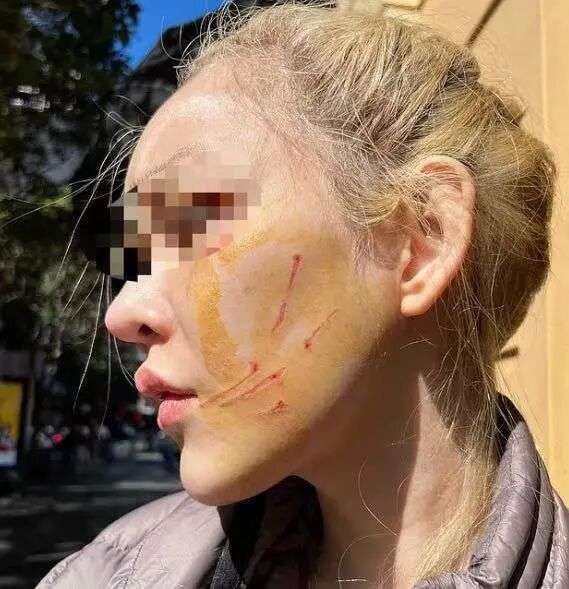 更离谱的是,她差点被人当众泼热汤,最后还被对方打到脸上留下血痕和瘀青...