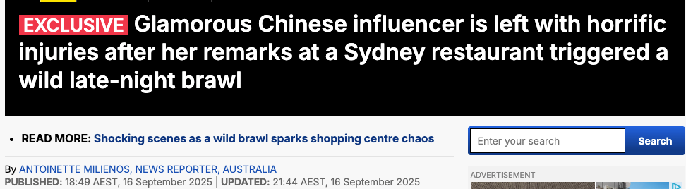 收藏华人热议!! 中国女网红澳洲餐厅遭暴力殴打! 满脸伤痕, 全身淤青! 网友: 自找的, 没素质...
