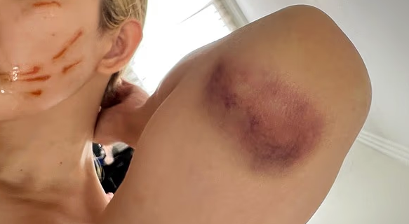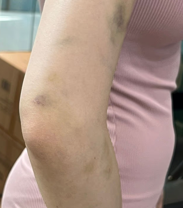 路上她情绪彻底崩溃,哭到呼吸困难,还出现严重的惊恐反应。脸上被抓伤的地方鲜血直流,手臂和腿上也青一块紫一块。