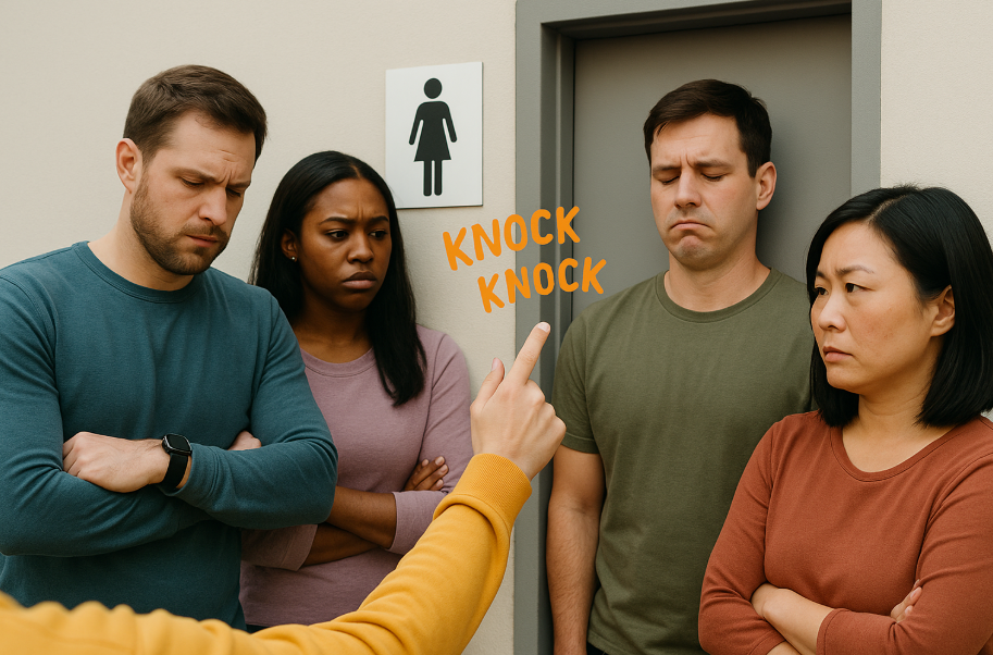 在华人语境里,敲厕所门很常见。遇到有人占用太久,我们会轻轻敲两下,提醒里面的人“还有人在等”。