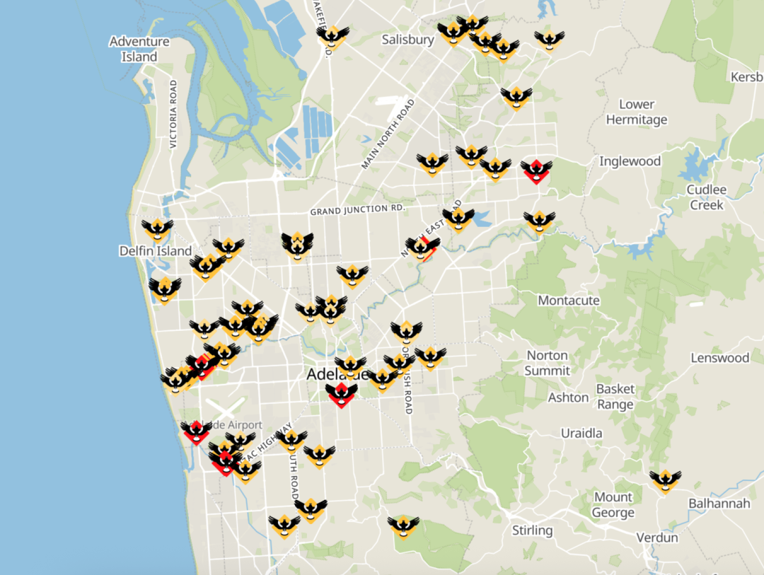 这些案例都已被网友上传至 Magpie Alert 网站,显示阿德的西部与南部郊区是重灾区。