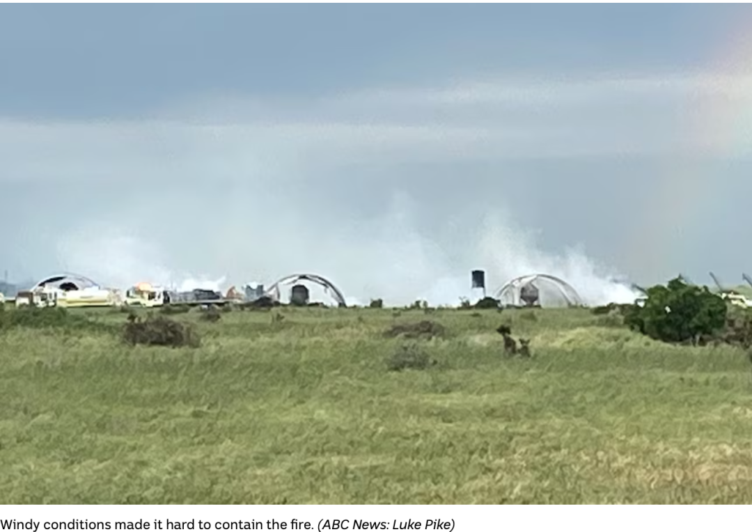 大火于周一上午11点半左右在Andgar Proprietorsr养猪场爆发,两栋猪舍被火焰吞噬。初步调查显示,干草在炎热干燥的强风下自燃,引发火势迅速蔓延。