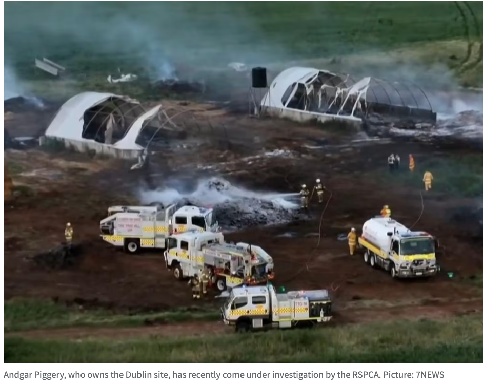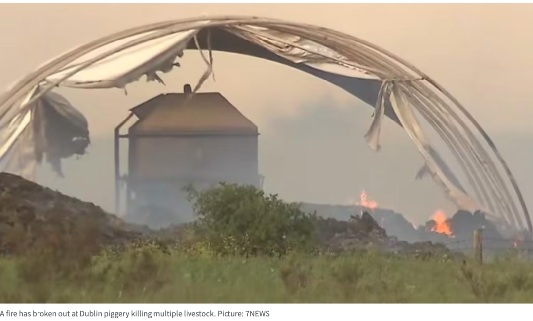 阿德以北约一小时车程的Dublin一处养猪场发生严重火灾,据信有数百头猪在大火中丧生。