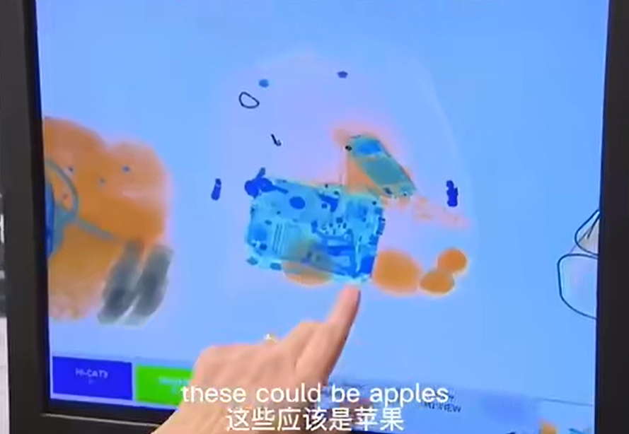 她把行李放到了安检机器上,海关人员发现不对劲。工作人员请她到一旁接受进一步询问,并叫来了一位中文翻译。