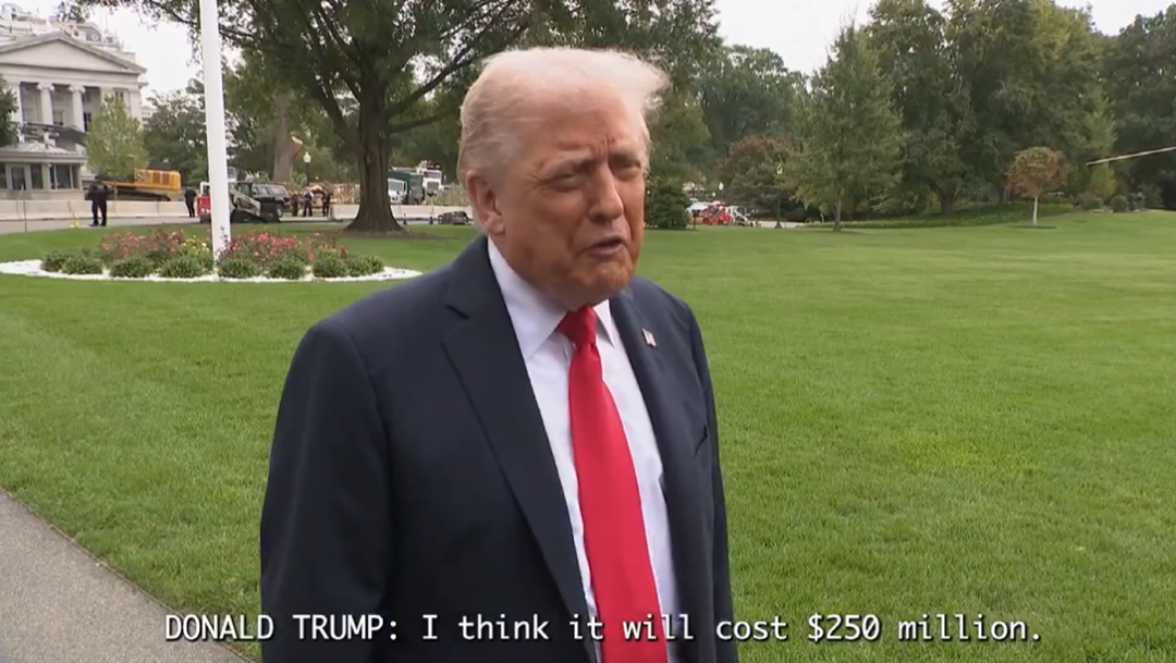 “我觉得这可能要花2.5亿美元,我认为这会是150年来最好的宴会厅。”