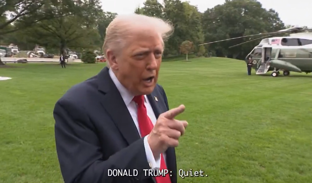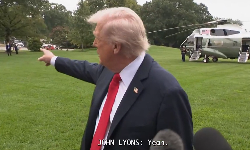 近日,在白宫的草坪上,特朗普正在接受媒体采访。