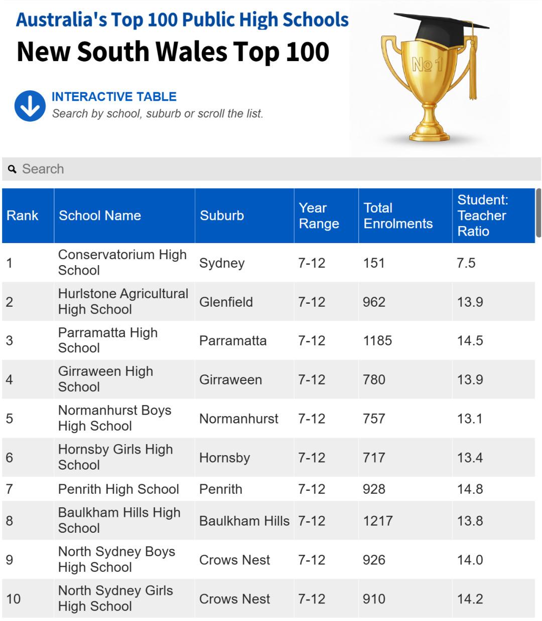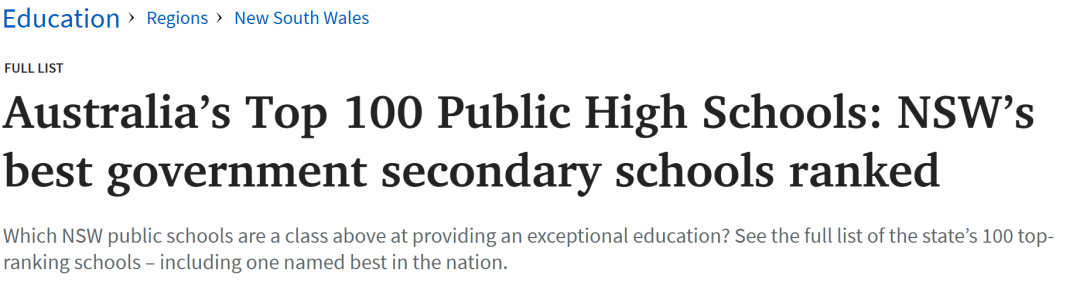 • Parramatta High School(部分精英制,每年招收60名学术特长生)位列第3