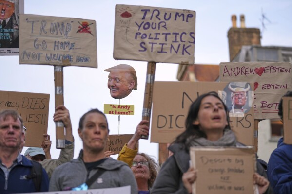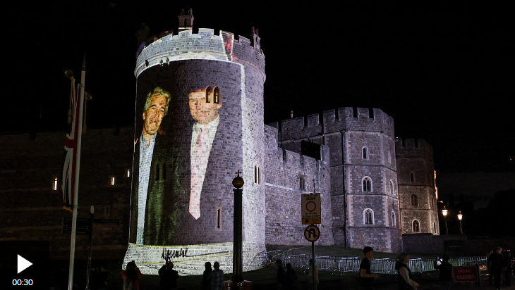 而抗议方式也不再局限于举牌和喊口号。周二晚上,就有人在温莎城堡外玩起了“光影艺术”:城堡墙面一度被投射上川普与已故性犯罪者杰弗里·爱泼斯坦的合影。警方立刻采取行动,四名男子因涉嫌“恶意通信”被捕,目前仍在拘留中。据悉被捕者分别来自东萨塞克斯、伦敦和肯特,年龄从三十多岁到六十岁不等。