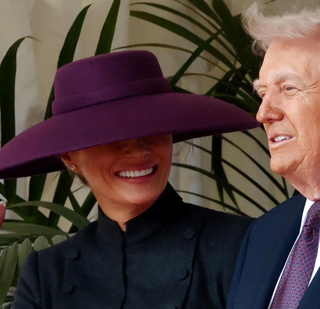 另一位“万众瞩目”的女性自然是美国第一夫人梅拉尼娅。她早已是时尚场合的常客,对大场面驾轻就熟。这次到访,梅拉尼娅依旧用“帽子外交”抢了不少镜头。抵达温莎时,她戴着一顶紫色宽边帽,几乎遮住双眼,搭配经典的迪奥深灰西装。