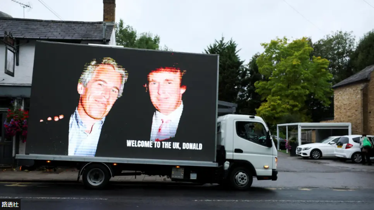 即便如此,第二天清晨,温莎街头又出现了一辆货车,上面贴着老川与爱泼斯坦的合照,并写着大字:“欢迎来到英国,唐纳德。”