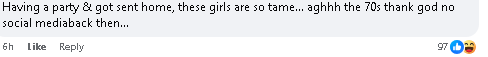 “这届女生算温柔的了,开个派对就被送回家。唉,还好70年代没有社交媒体,不然我们那时候干的事早火出圈了。”