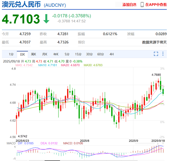 澳元兑人民币汇率从昨天的的高点4.76跌至4.71,澳元兑美元跌至0.66美分。
