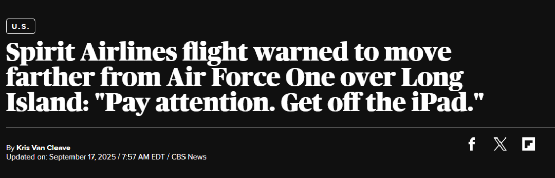 就在空军一号执行任务途中,Spirit航班因航向过于接近,被空中交通管制员多次严厉警告并要求立即修正航道,场面一度紧张。