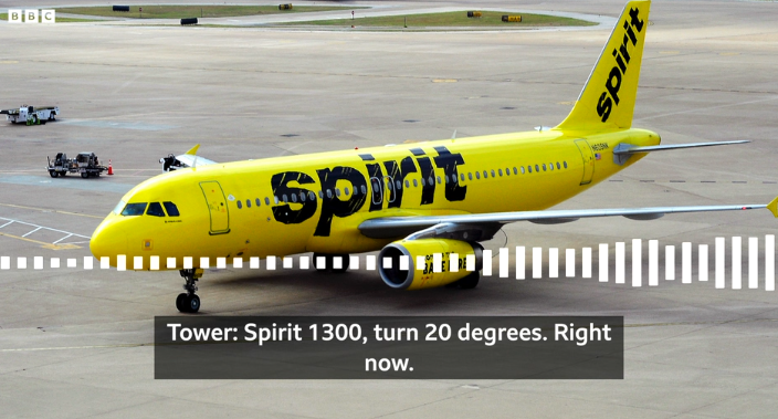 根据航空通讯网站liveatc.net公开的无线电录音,当Spirit 1300飞越纽约空域时,管制员的声音不断加重:“Spirit 1300,右转20度。”