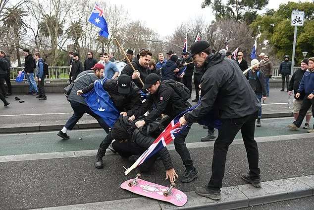 其中,游行的一大主力就是澳洲的反移民团体,他们反对移民,呼吁驱逐移民,并且