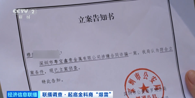 9月13日,多名黄金商户向深圳警方报案,称向“粤宝鑫”支付大额预付款后,公司负责人失联。