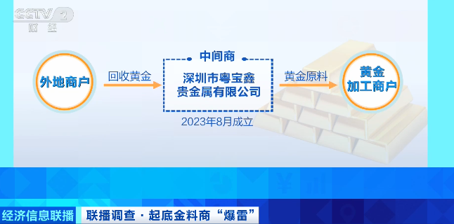 天眼查信息显示,粤宝鑫全称为“深圳市粤宝鑫贵金属有限公司”,成立于2023年8月。作为水贝市场规模较大的黄金原料中间商,粤宝鑫为下游加工商户提供黄金原料。此外,也有不少外地商户会将回收的黄金邮寄给粤宝鑫进行结算。
