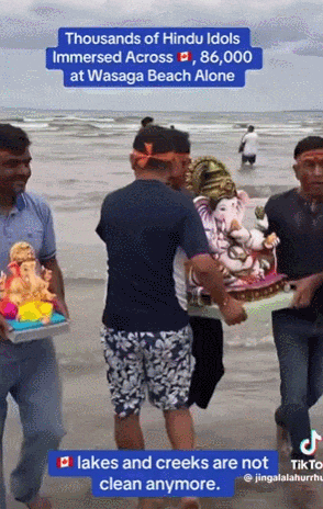 一位网友发问:“这是Wasaga Beach。有人把这些印度教的神像丢在水里和河道里,说是什么让它们自然溶解。这怎么能被允许呢?”