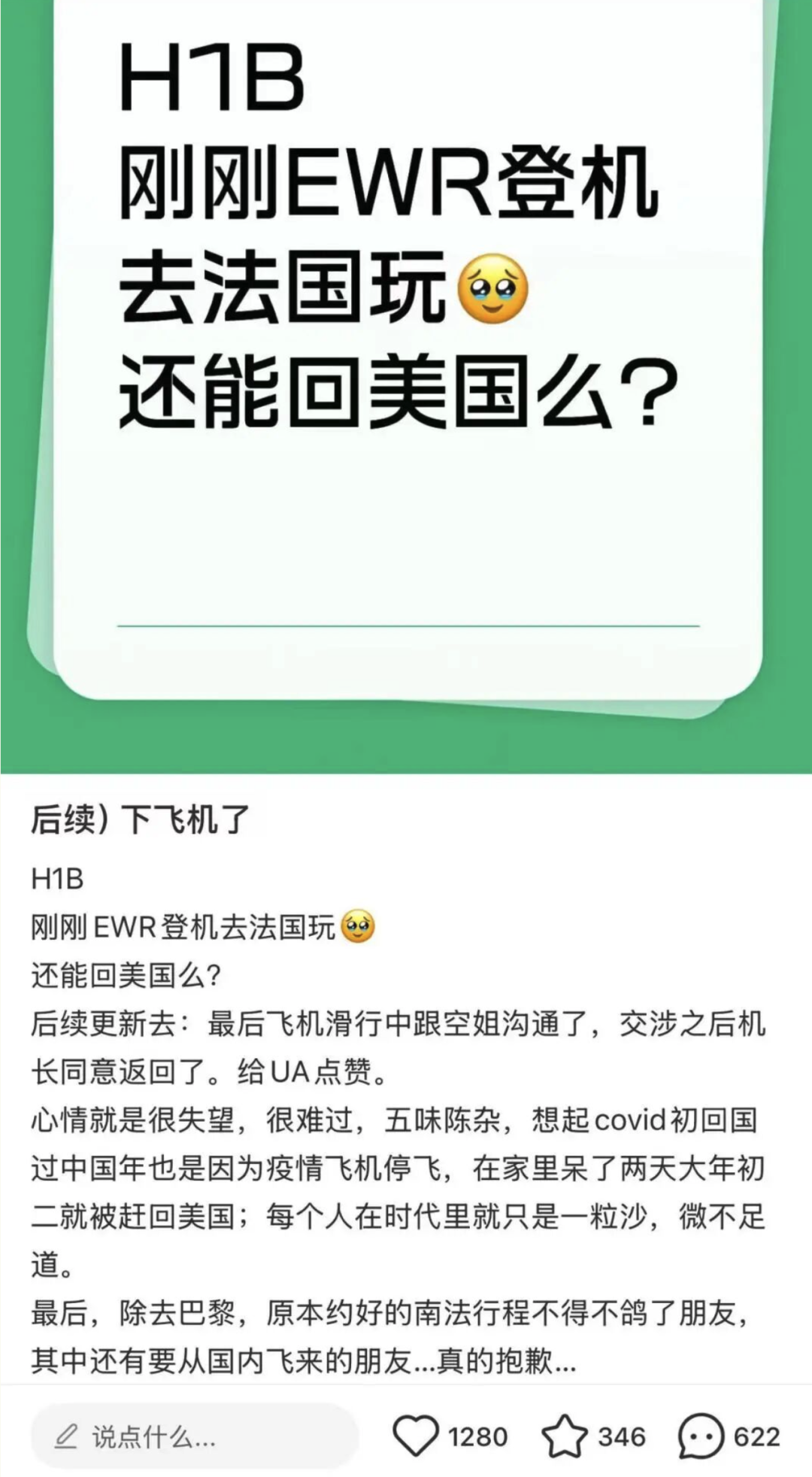 网友H称自己在游轮旅行,原本计划9月22日返美,看到新闻后立刻下船,火速返回美国境内。H表示同船的很多印度人都和他同一时间下船办理返回美国的手续。
